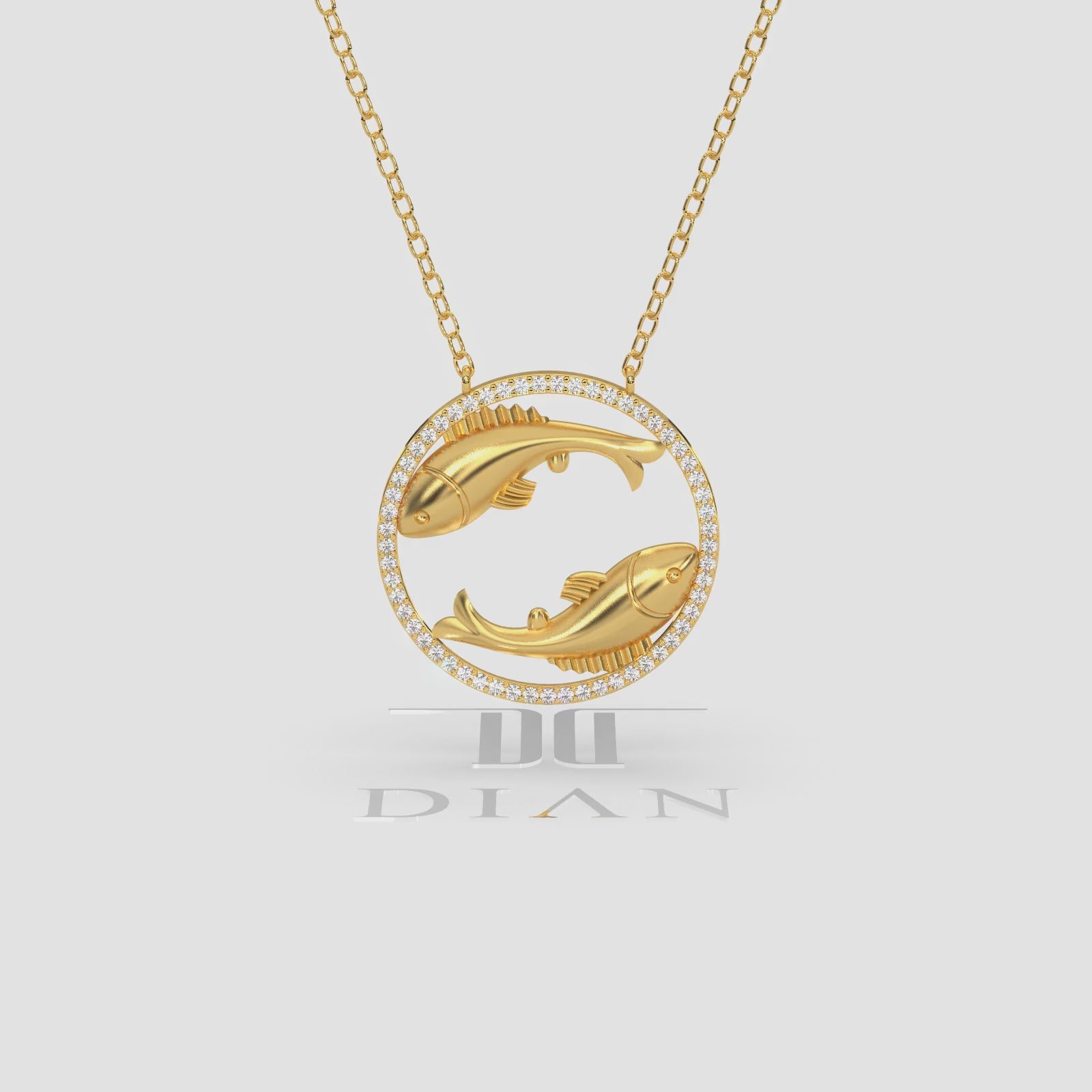 18K Yellow Gold Pisces Zodiac Pendant Necklace with Diamonds - Elegant Horoscope Jewelry