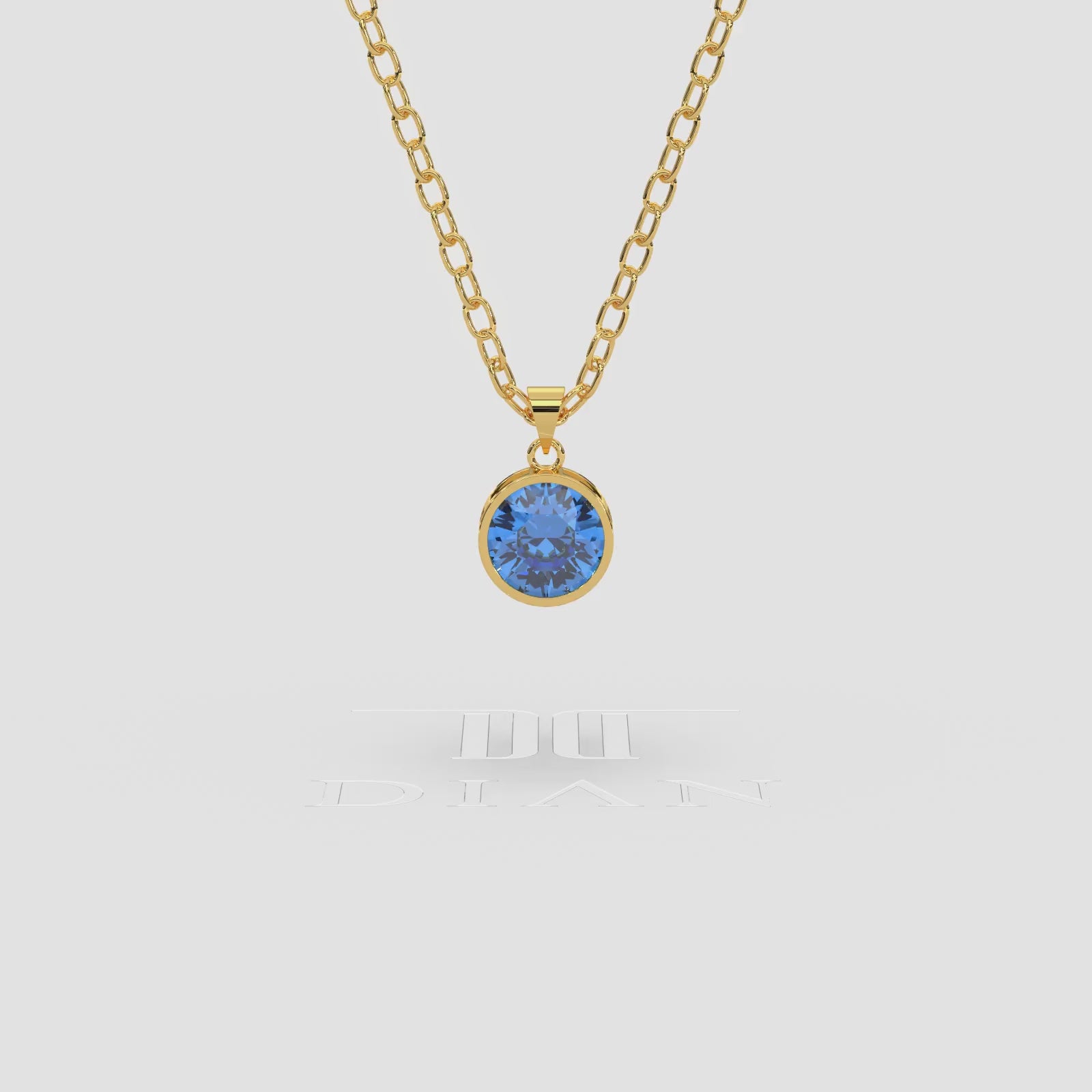 18K Gold Blue Topaz Solitaire Bezel Pendant Necklace