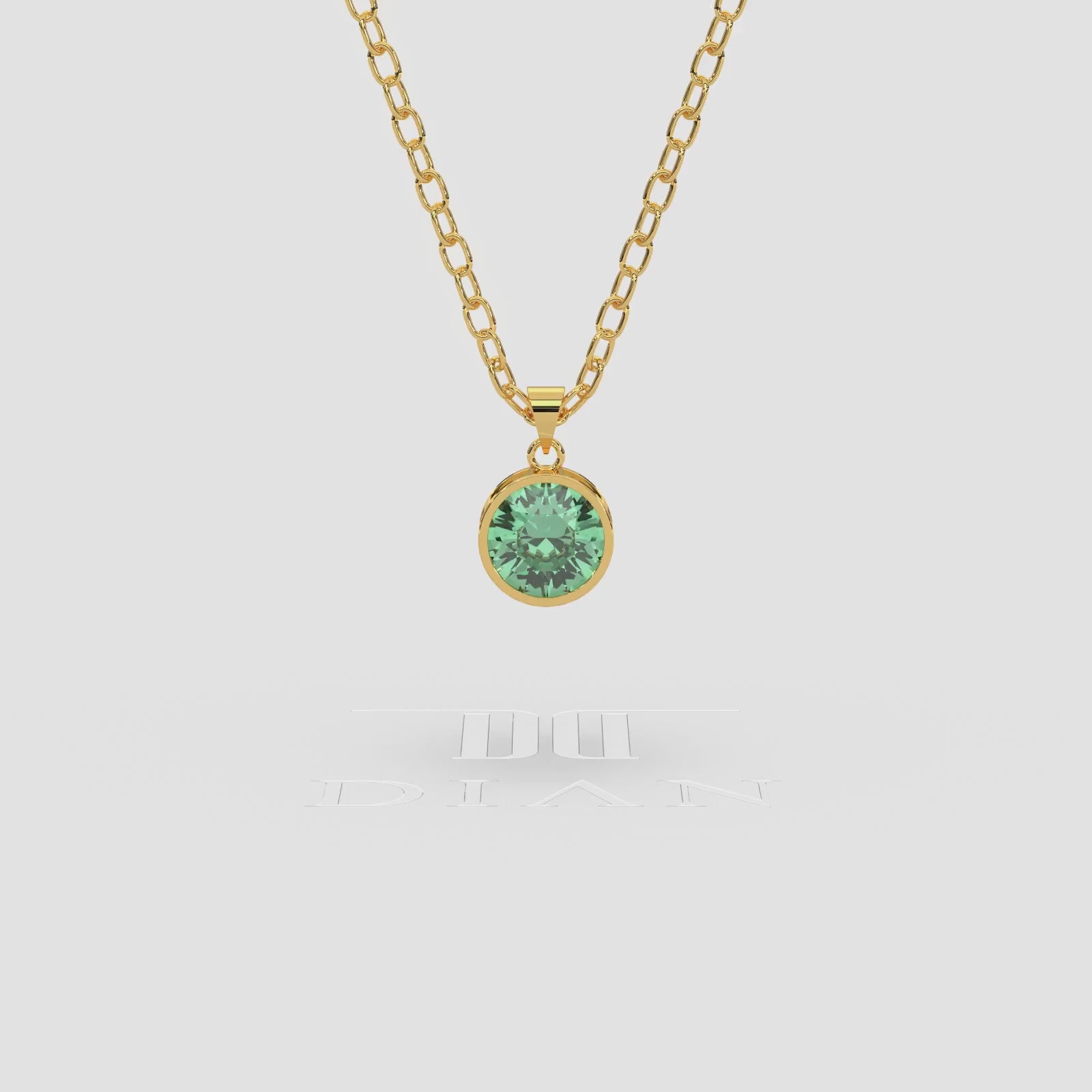 18K Gold Emerald Solitaire Bezel Pendant Necklace