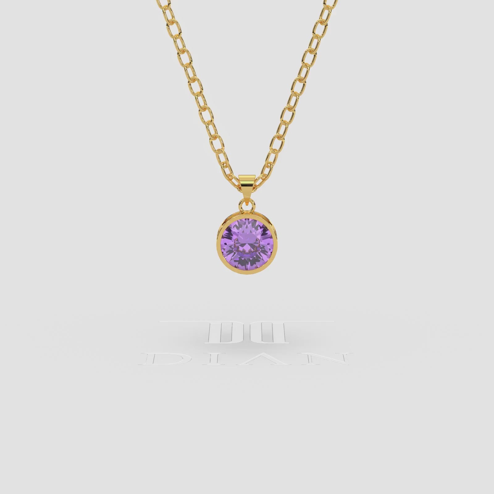 18K Gold Amethyst Solitaire Bezel Pendant Necklace