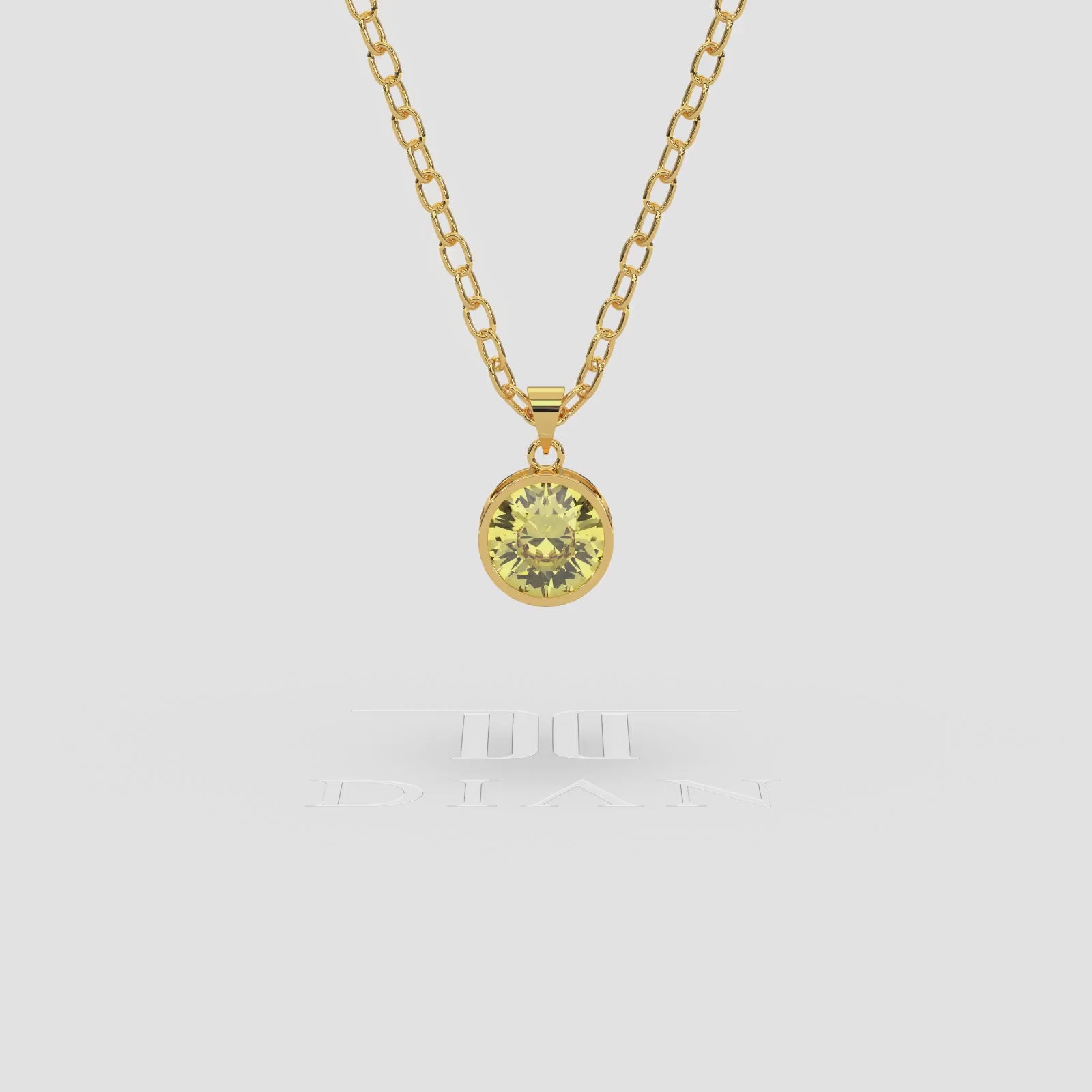 18K Gold Citrine Solitaire Bezel Pendant Necklace