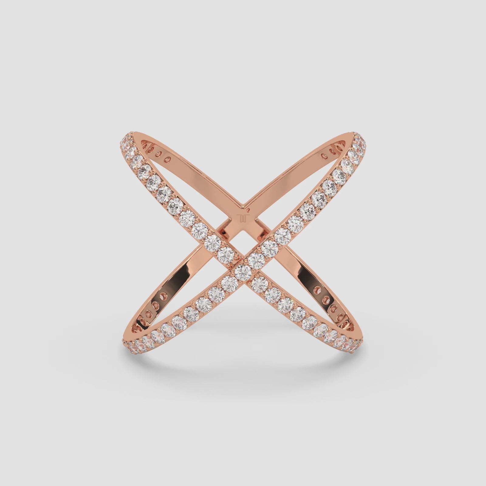18k Gold Diamond Criss-Cross X Ring | Modern Pave Statement Band