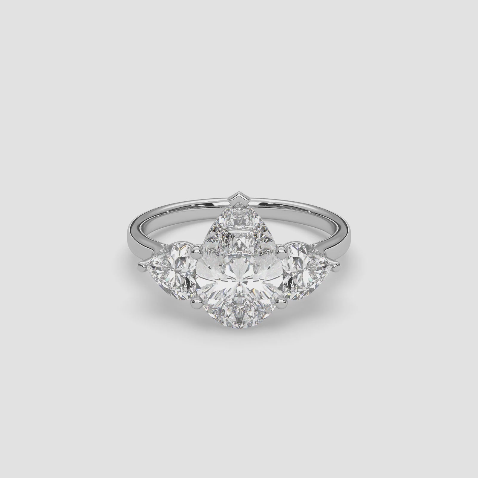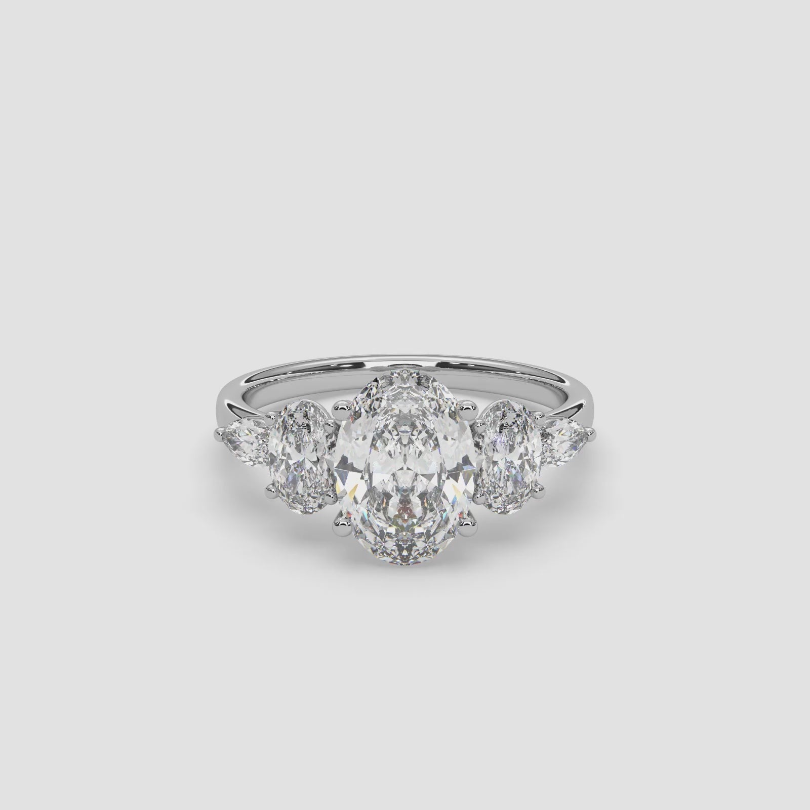Solid Gold Trilogy Engagement Ring | Oval & Pear Cut Diamond Ring
