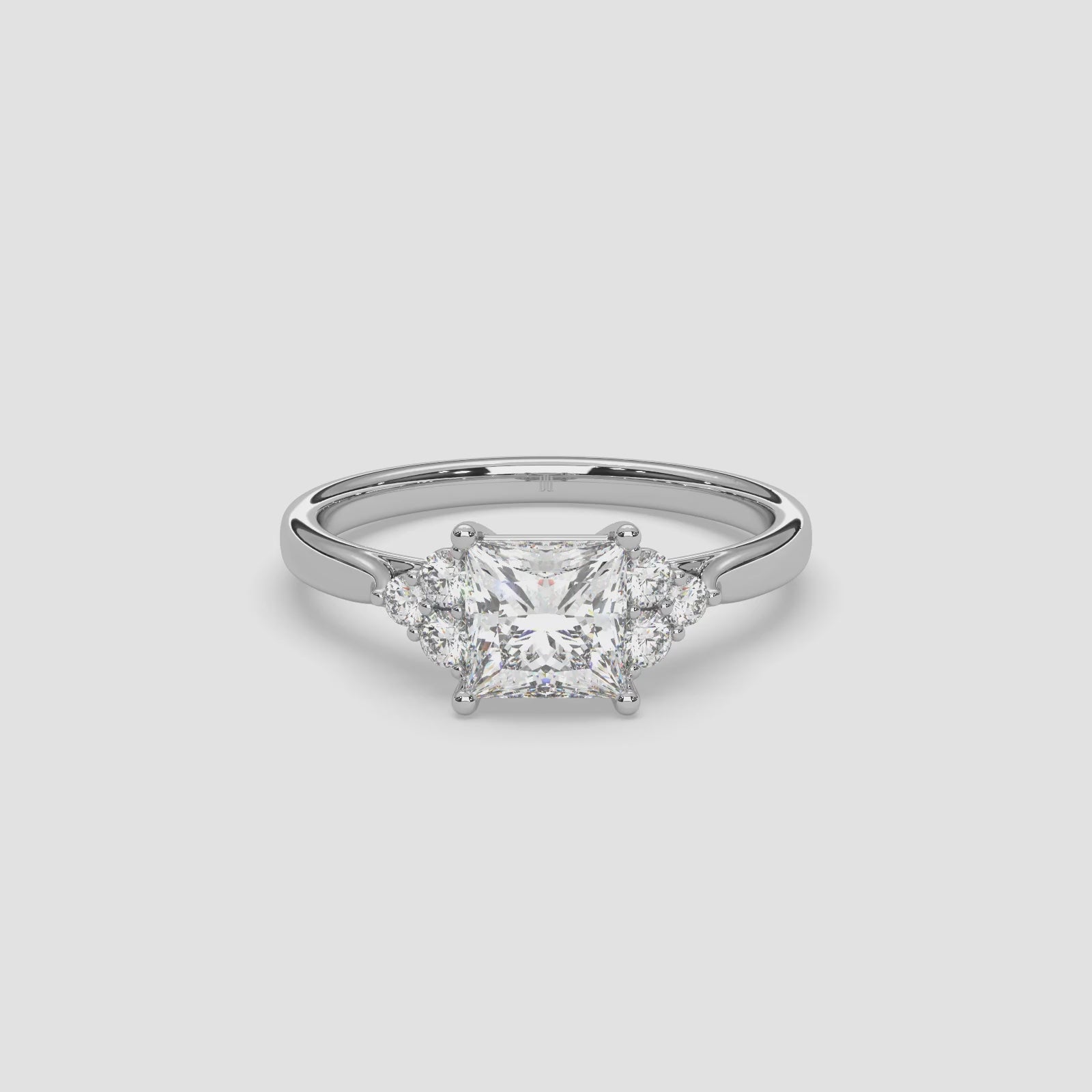 Princess Cut Trefoil Diamond Engagement Ring in Solid Gold
