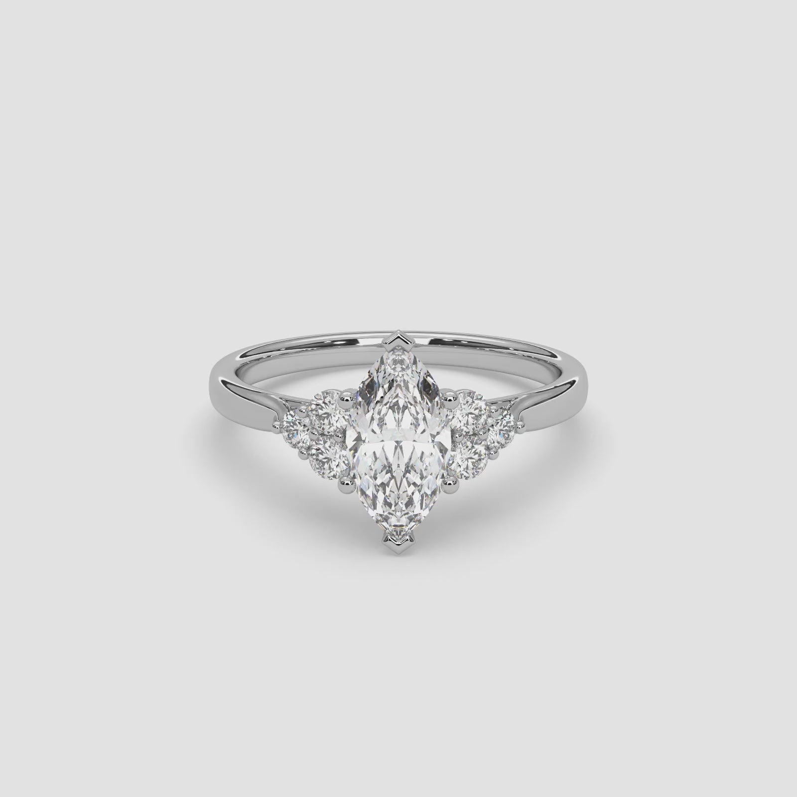 Solid Gold Marquise Diamond Engagement Ring | Cluster Side Stone Cluster Ring