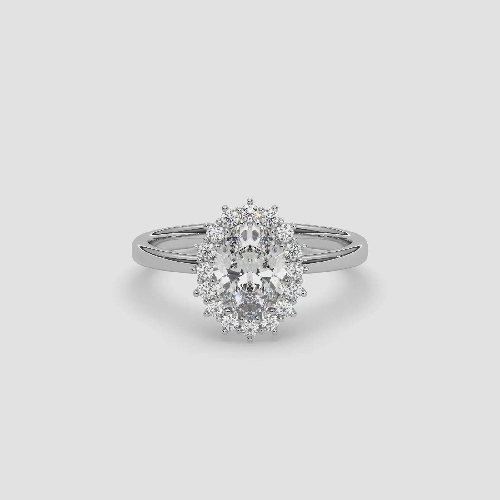 18K Gold Oval Halo Diamond Engagement Ring | Classic Floral Sunburst Design