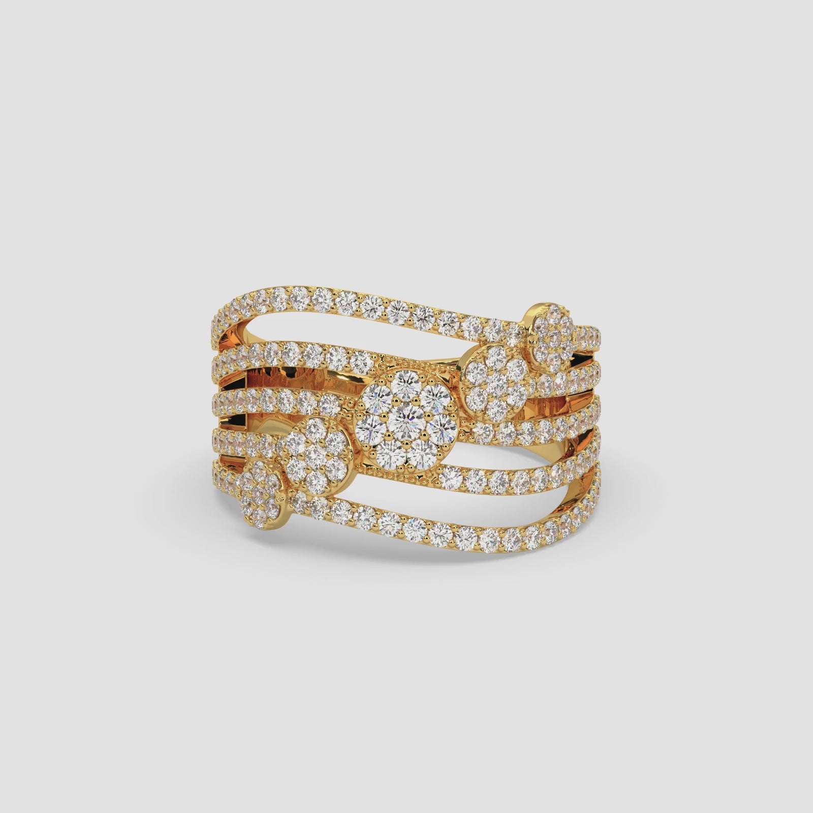 18k Gold Multi-Row Diamond Cluster Statement Ring | 5-Band Stacked Wave Ring