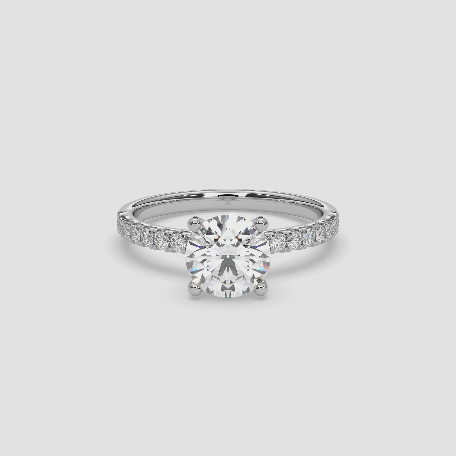Classic Round Brilliant Solitaire Engagement Ring in Solid Gold | French Pave Diamond Band