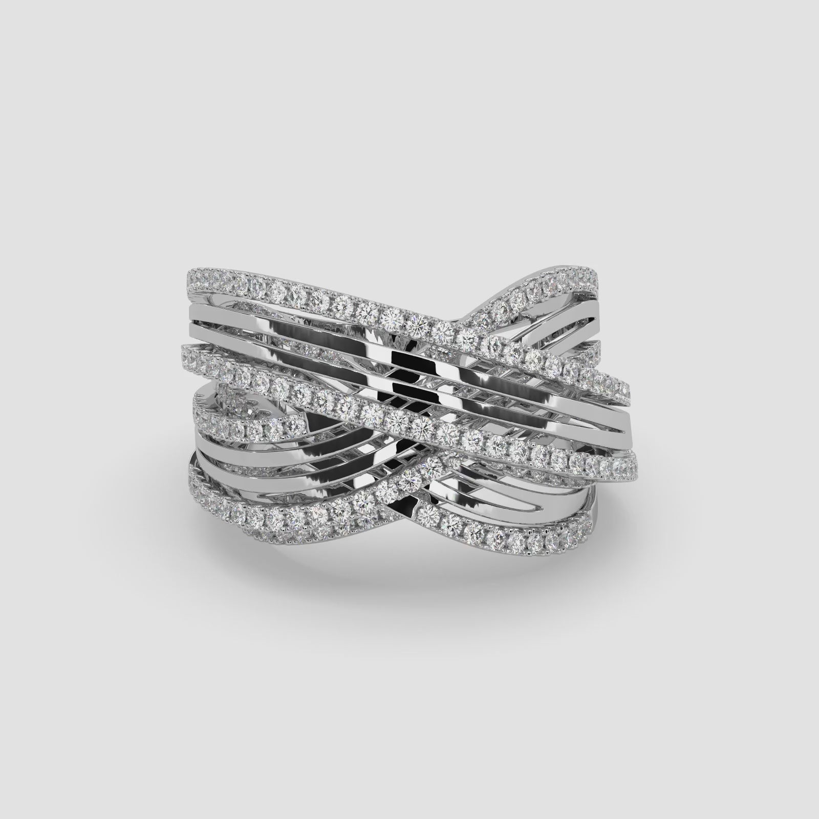 18k Gold Multi-Row Crossover Diamond Ring | Twisted Rope Statement Band for Women