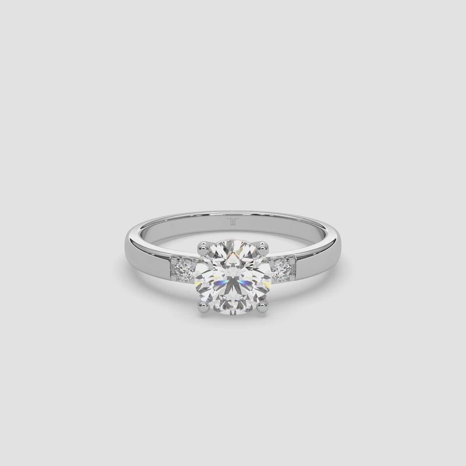 Solid Gold Three-Stone Round Diamond Trilogy Engagement Ring | Timeless Elegance