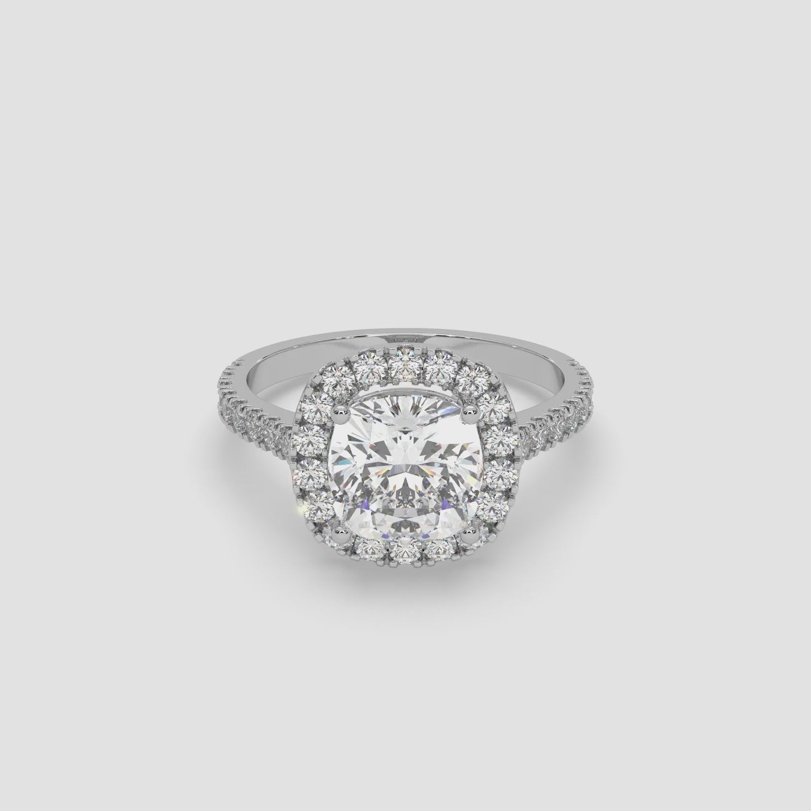 Solid Gold Cushion Cut Halo Diamond Engagement Ring | Pave Set Band