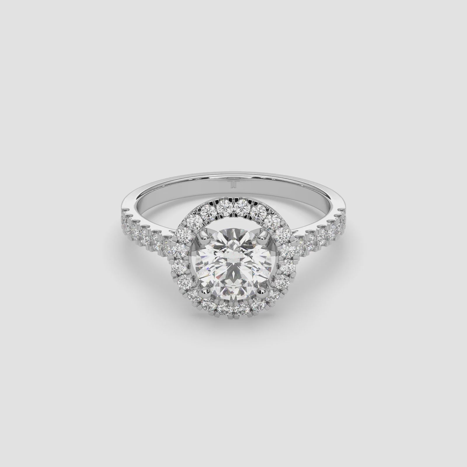 Solid Gold Round Brilliant Cut Diamond Halo Engagement Ring