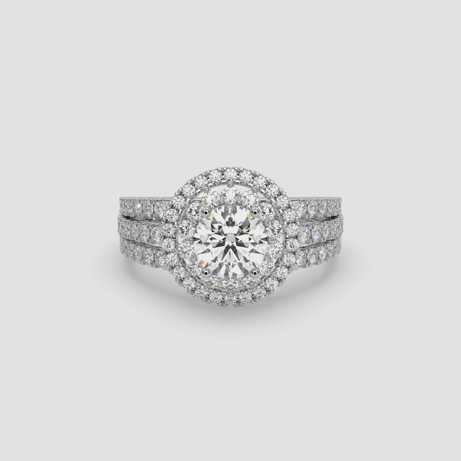18K Gold Double Halo Diamond Engagement Ring | Round Cut Split Shank Bridal