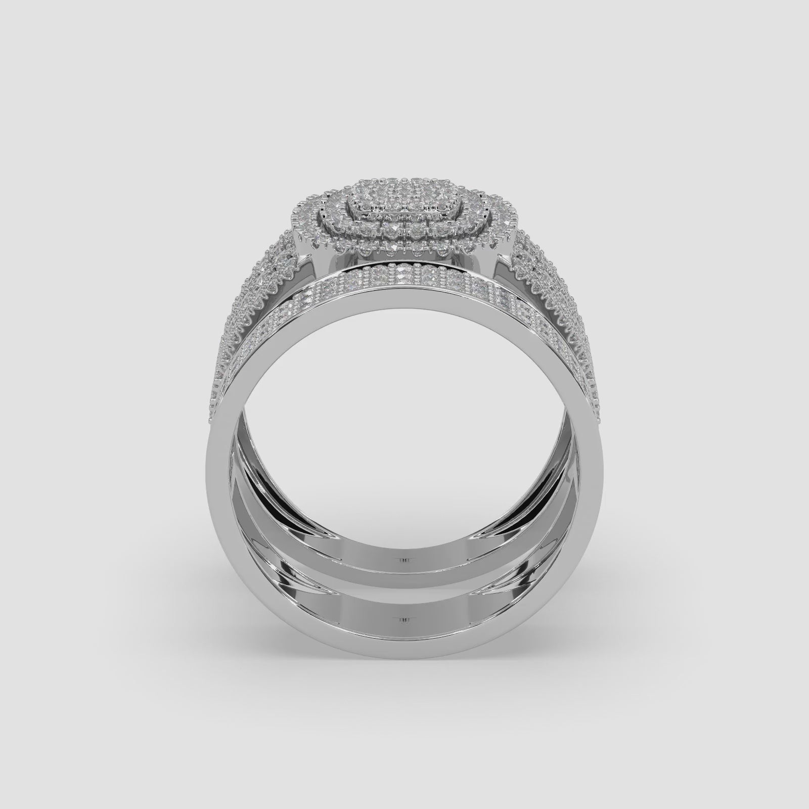 Unisex Cushion Shape Double Halo Diamond Ring | 18K Gold Multi-Row Statement Ring
