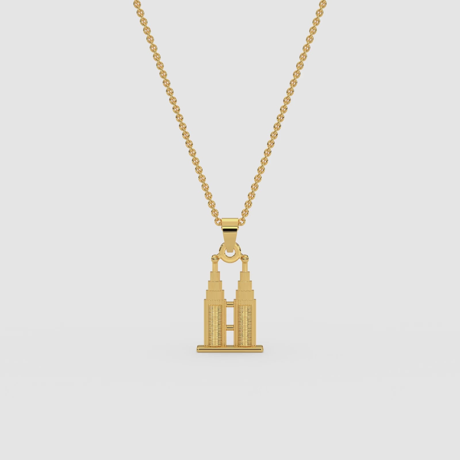 18K Gold Petronas Twin Towers Pendant Necklace | Malaysian Souvenir Jewelry