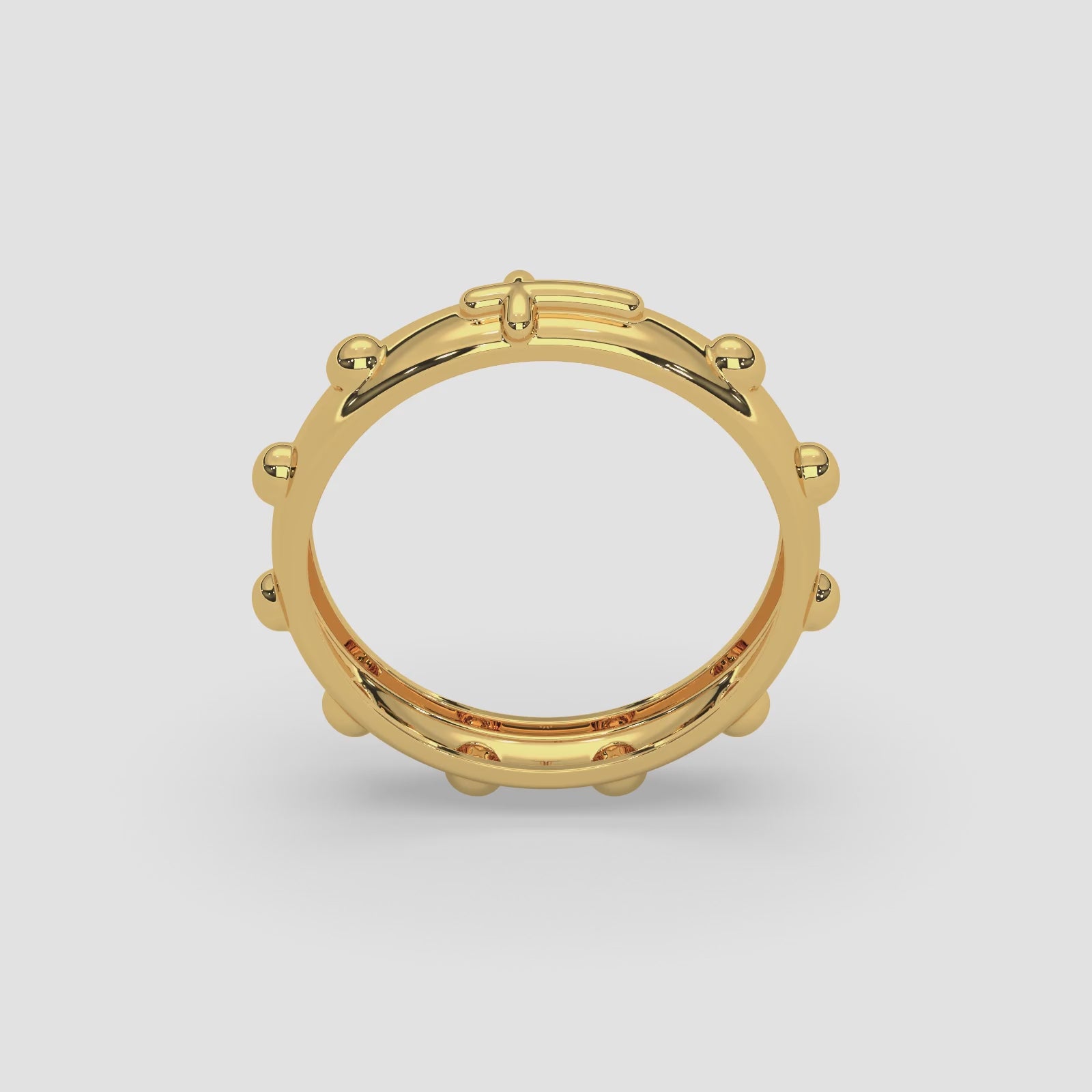 18k Gold Rosary Ring | Solid Gold Prayer Band with Cross & Ten Decades