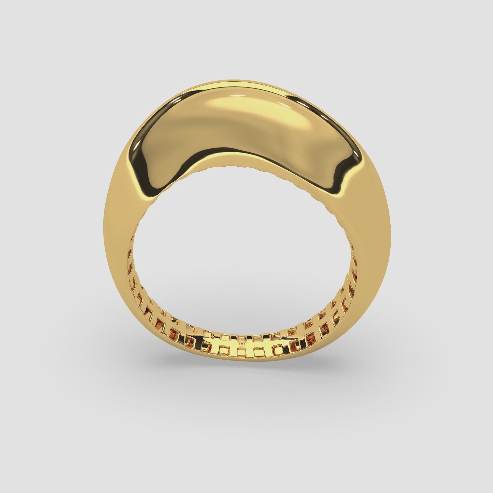 18k Gold Ribbed Croissant Dome Ring | Chunky Statement Band for Women