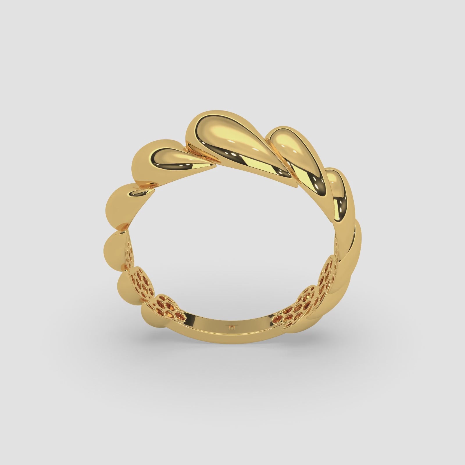 18k Gold Ribbed Statement Ring | Sculpted Open-Work Band
