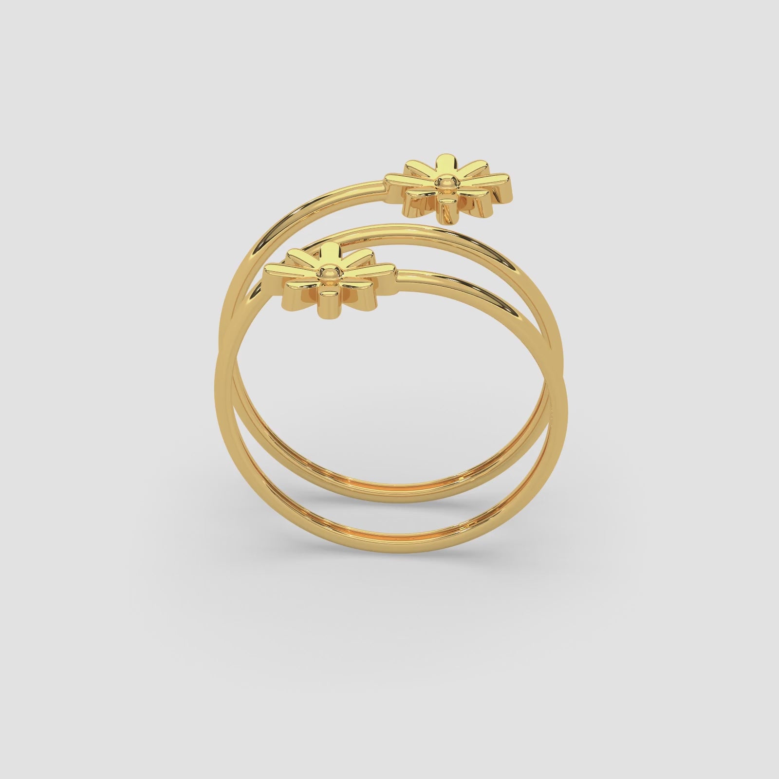 18K Gold Floral Spiral Ring | Double Daisy Wrap Design for Women