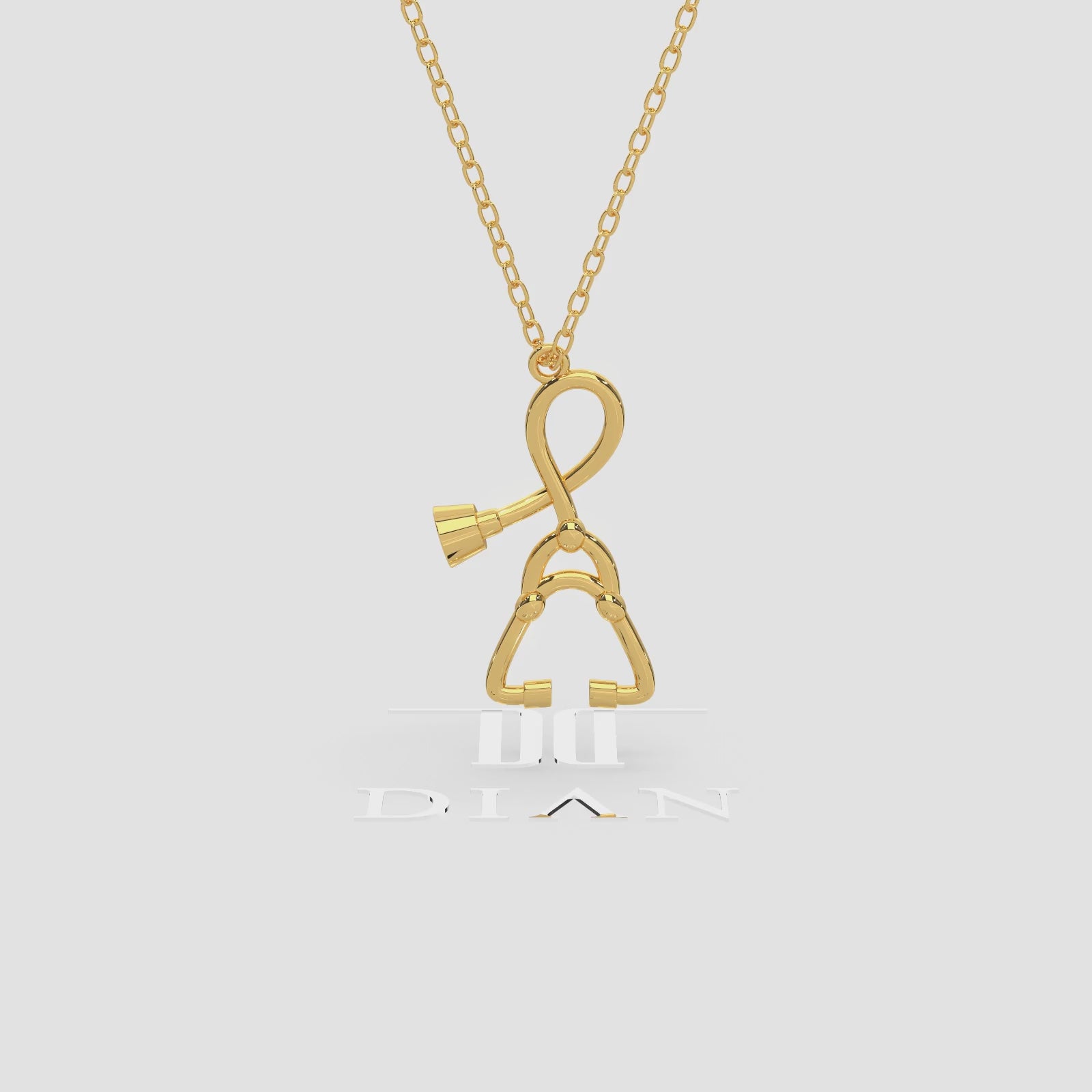 18K Gold Stethoscope Necklace - Dainty Medical Jewelry for Doctors & Nurses