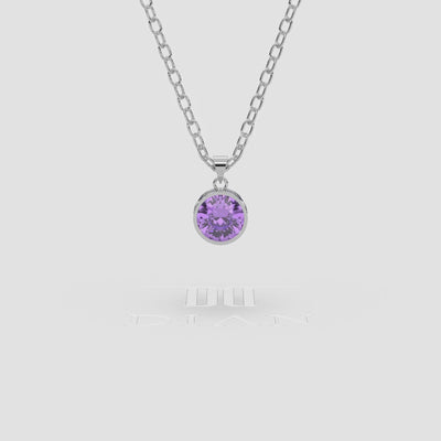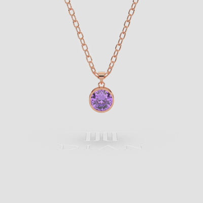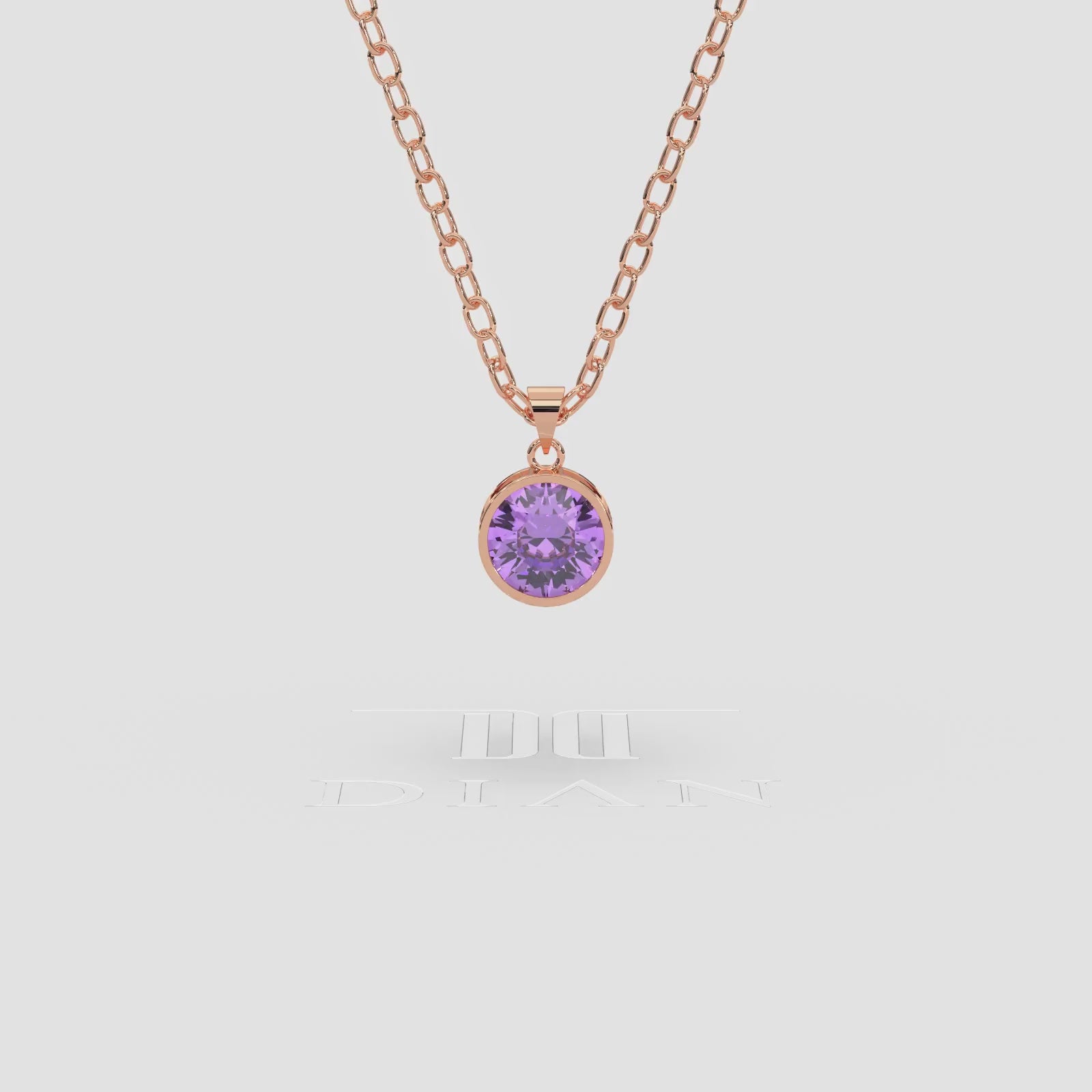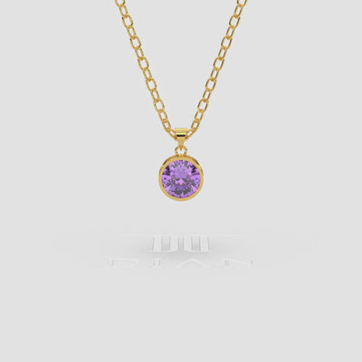 18K Gold Amethyst Solitaire Bezel Pendant Necklace