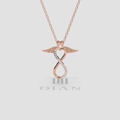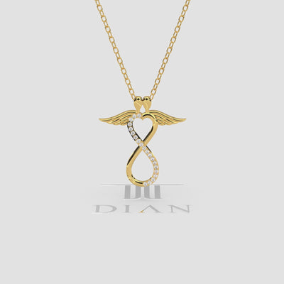 18K Gold Angel Wings Infinity Necklace with Diamond – Elegant & Timeless Love Symbol