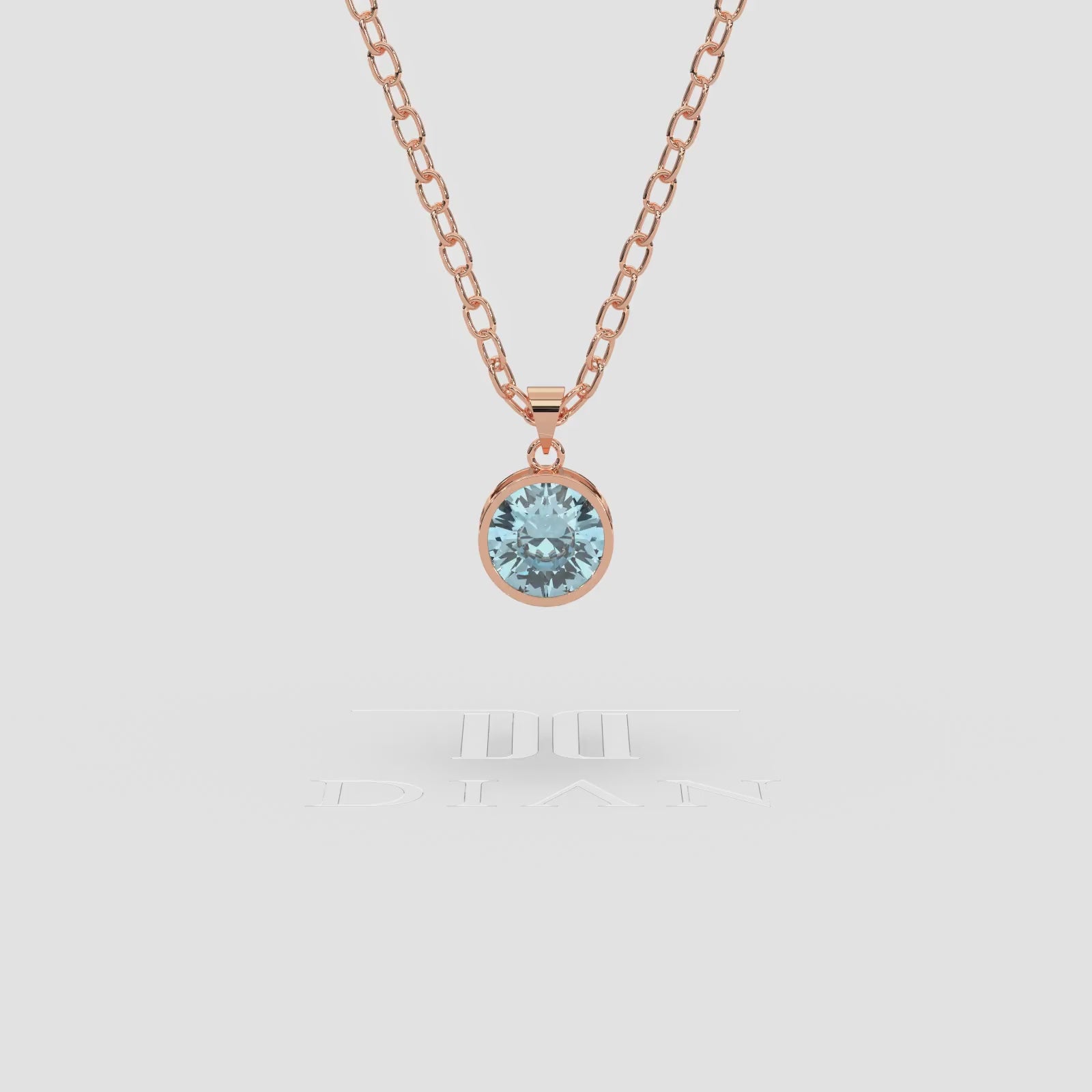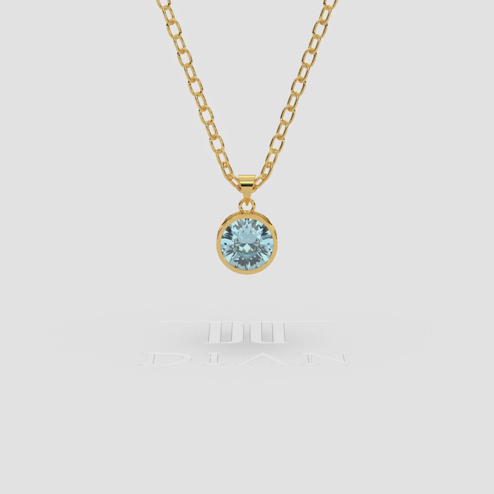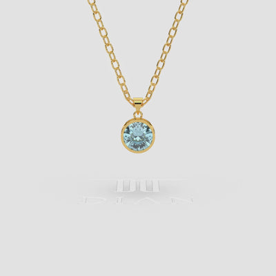 18K Gold Aquamarine Solitaire Bezel Pendant Necklace