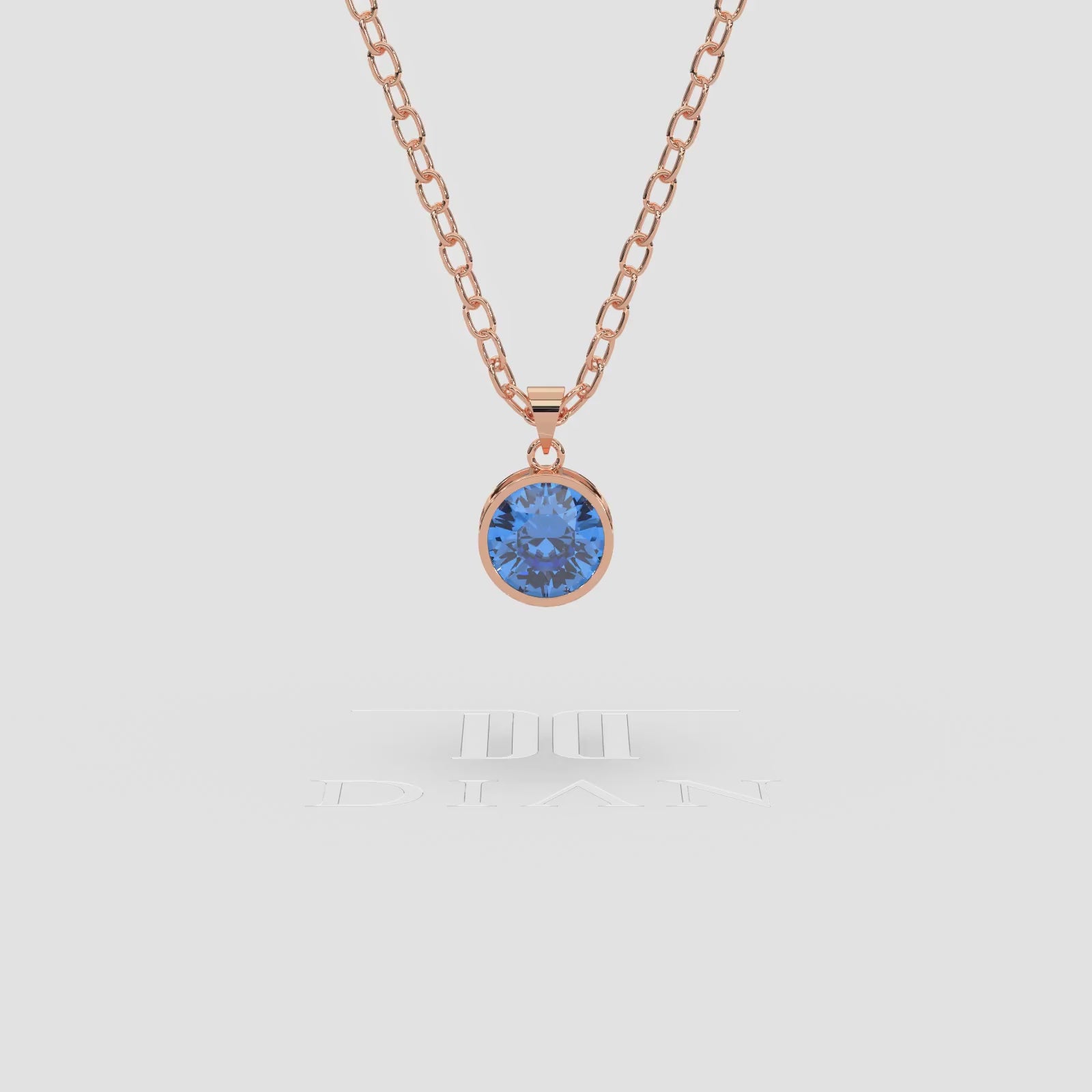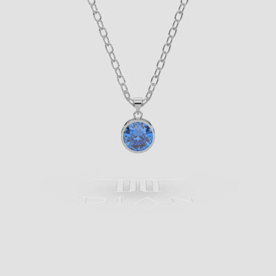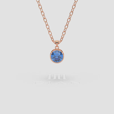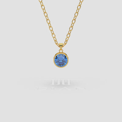 18K Gold Blue Topaz Solitaire Bezel Pendant Necklace