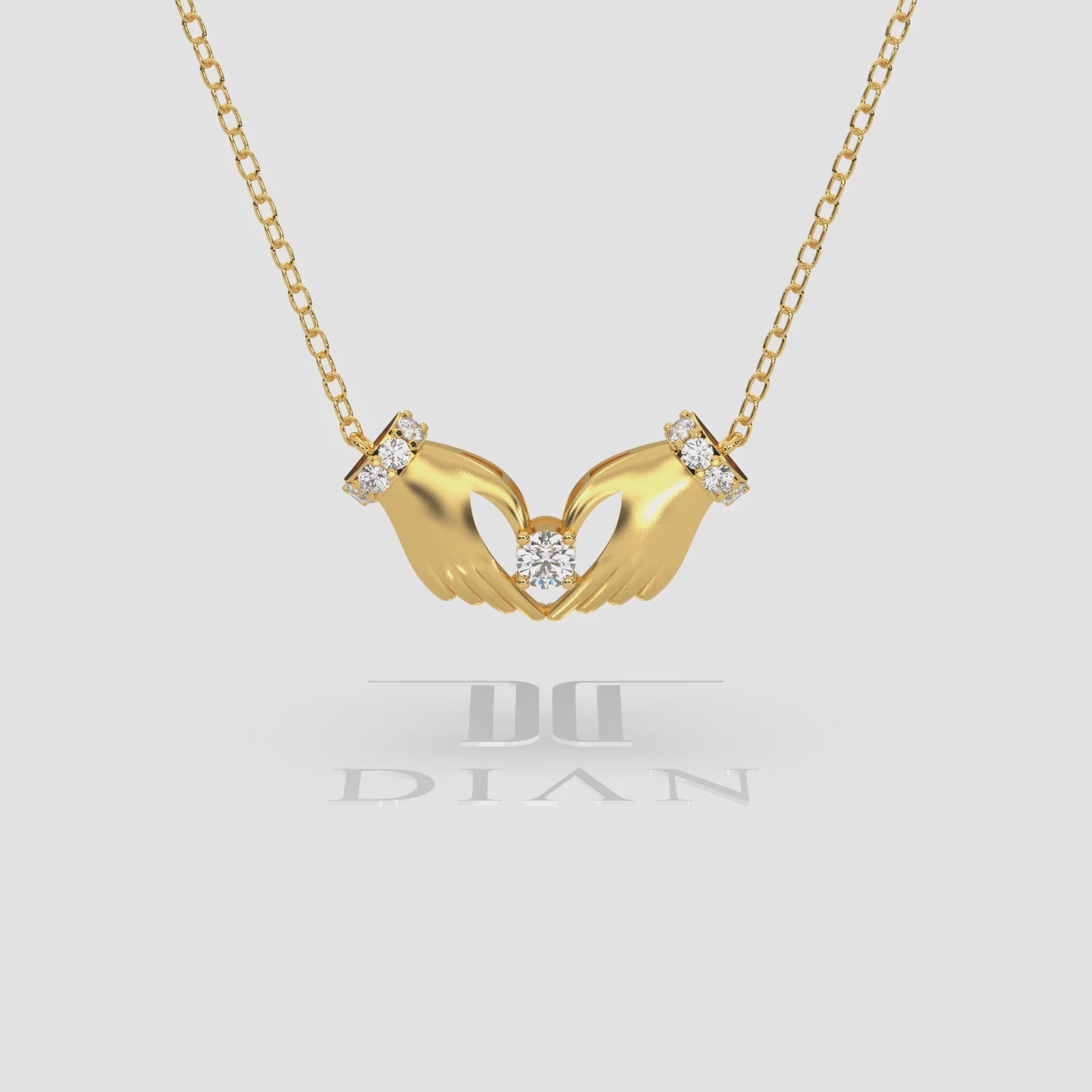 18K Gold Diamond Hands Holding Heart Necklace - Love & Commitment Pendant