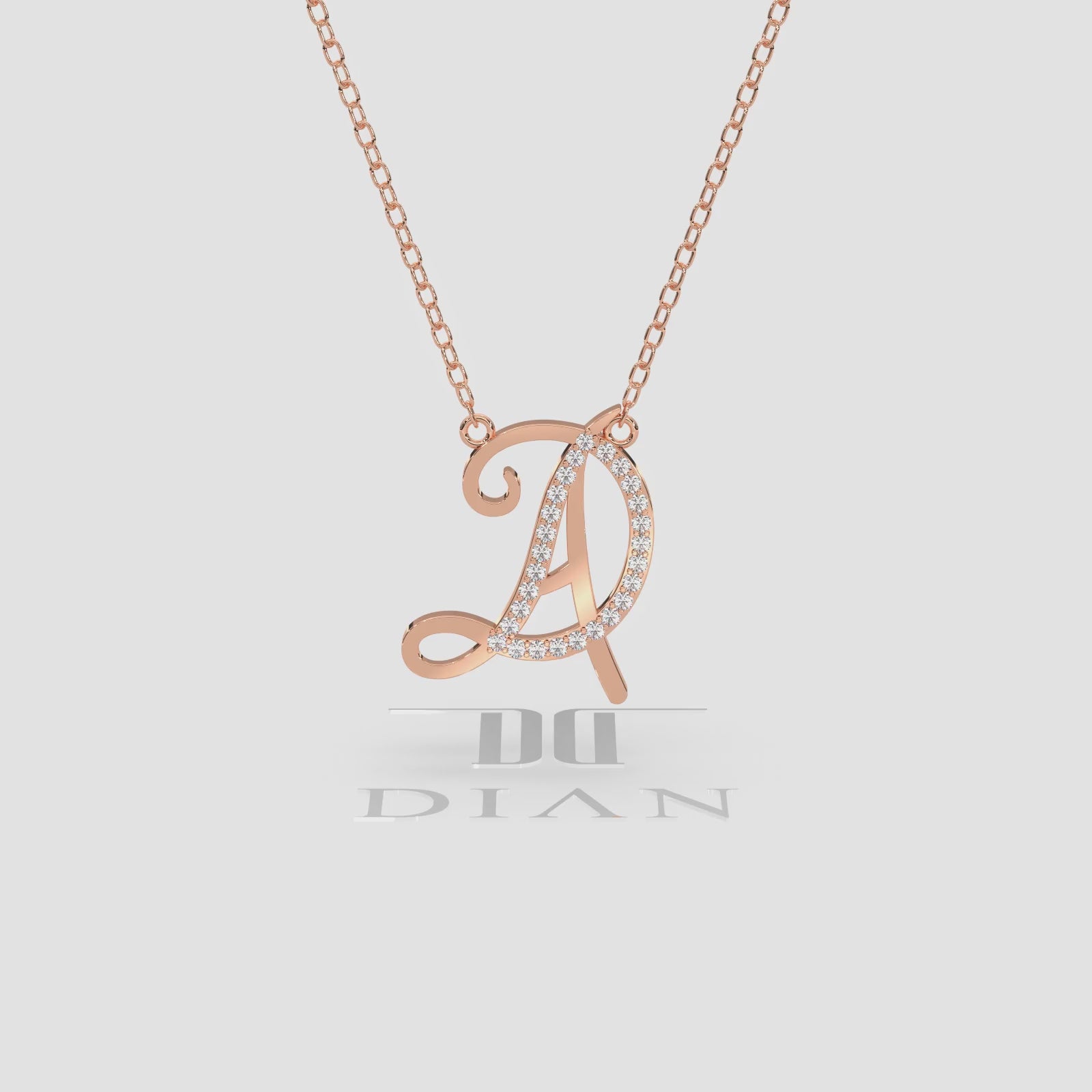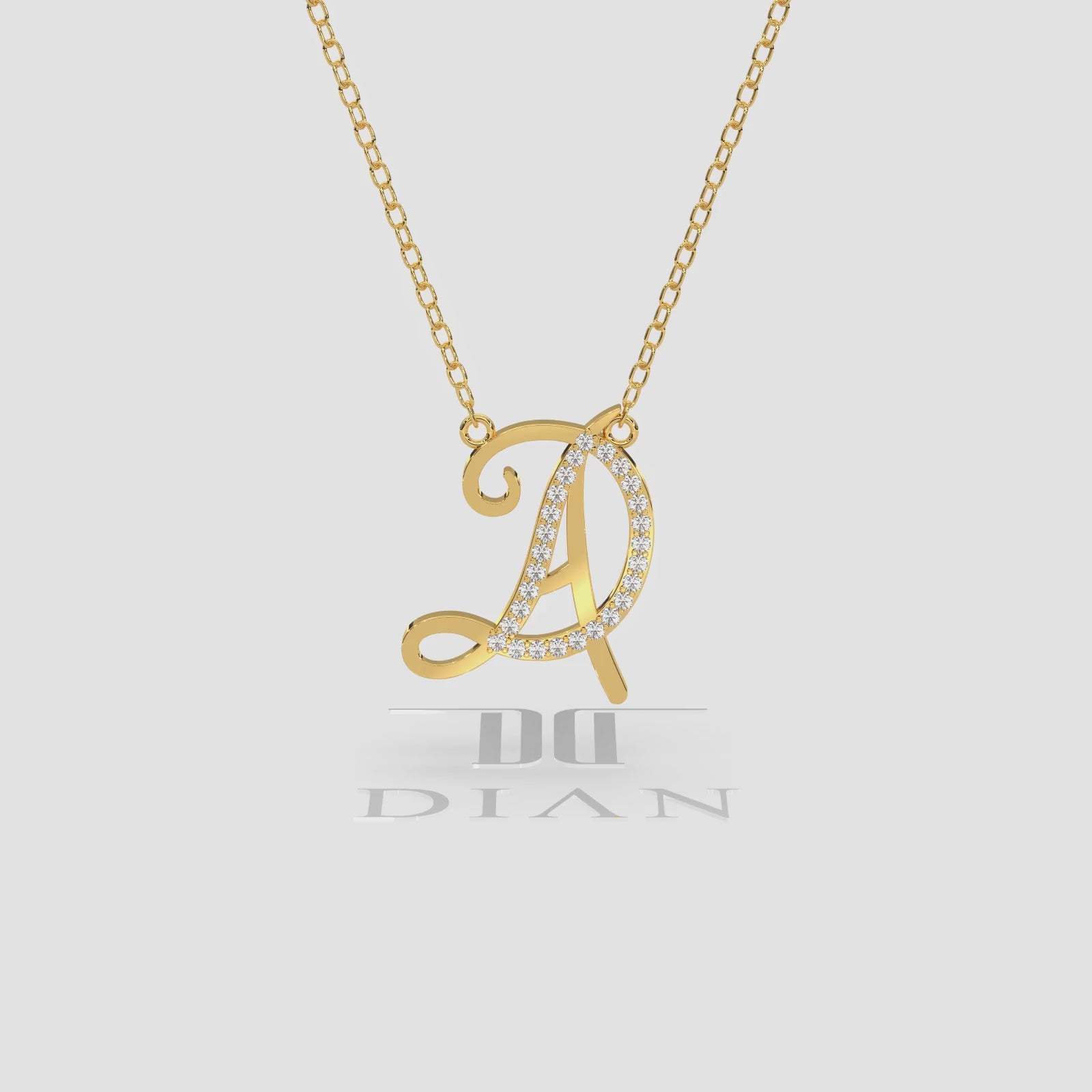 18K Gold Diamond Initial Necklace 'A and D' - Personalized Script Letter Pendant