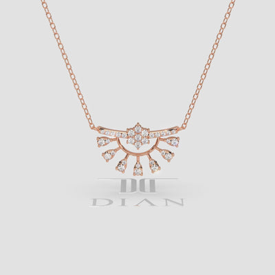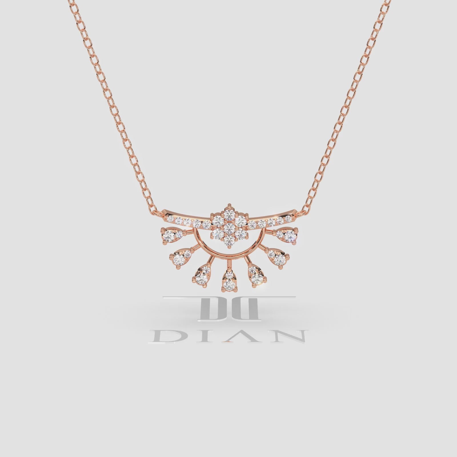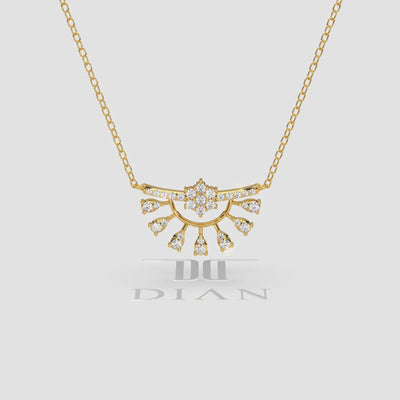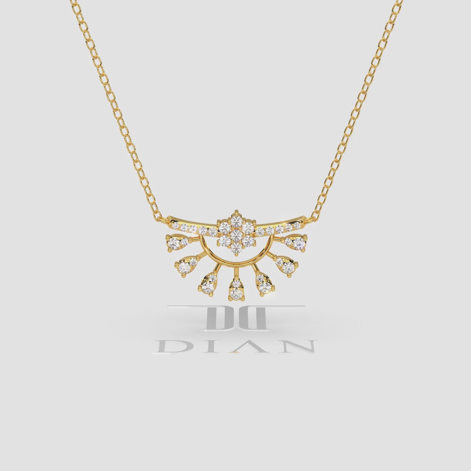Elevate your style with our exquisite 18K yellow gold necklace featuring a stunning rising sun design adorned with sparkling diamonds. This elegant diamond pendant is perfect for adding a touch of timeless sophistication to any outfit, making it an ideal gift or a cherished addition to your fine jewelry collection. Crafted for lasting beauty and brilliance.