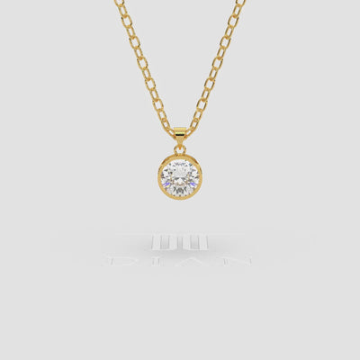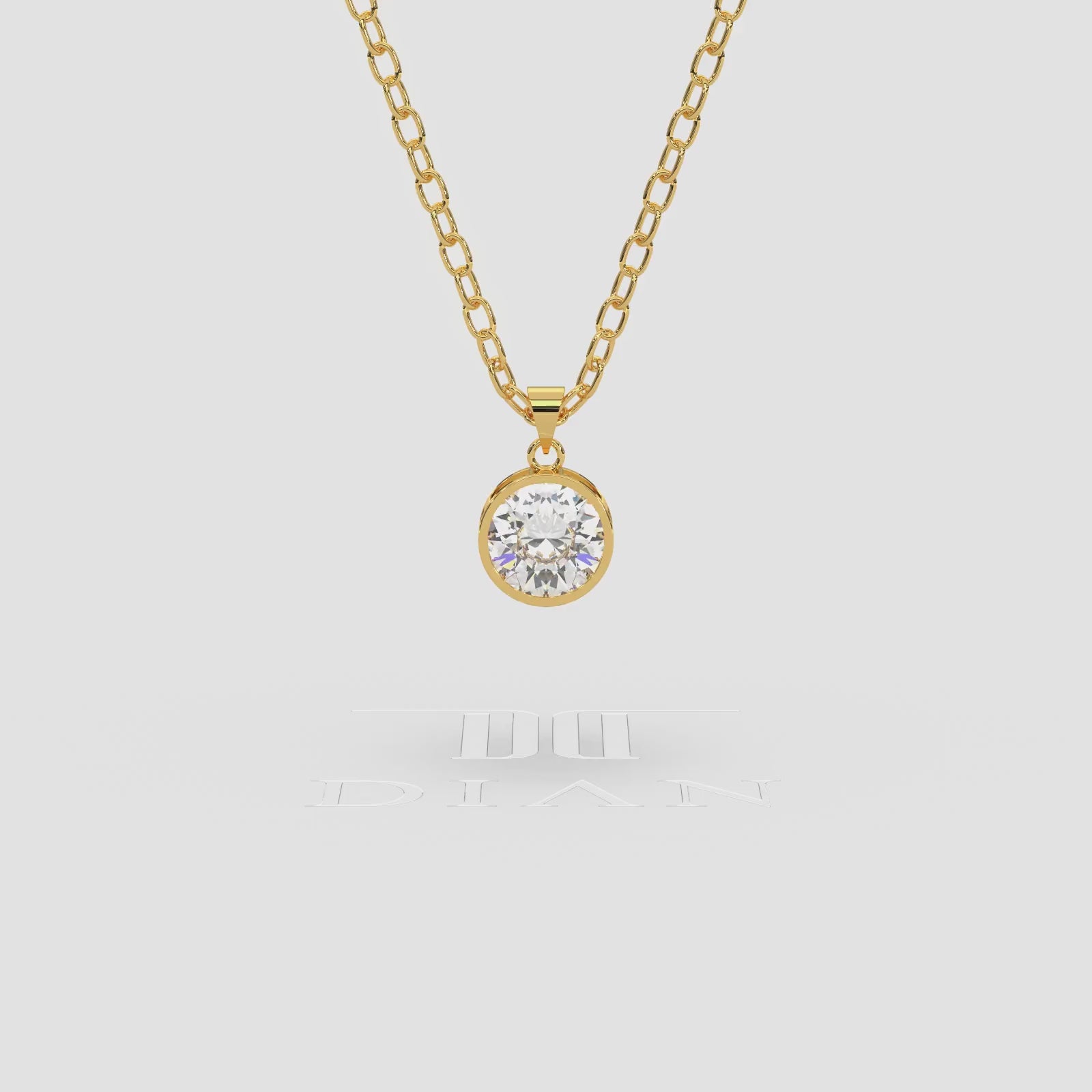 18K Gold Diamond Solitaire Bezel Pendant Necklace