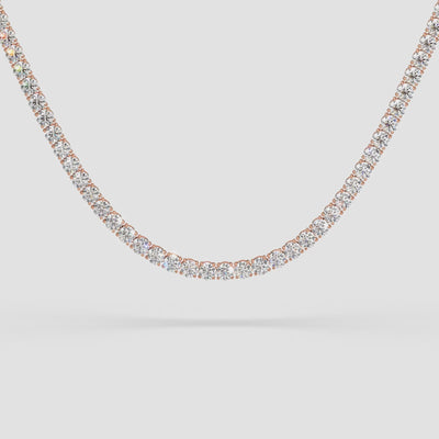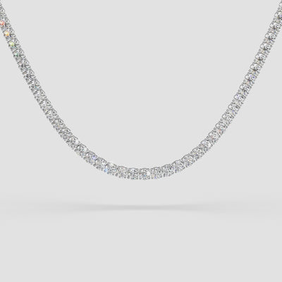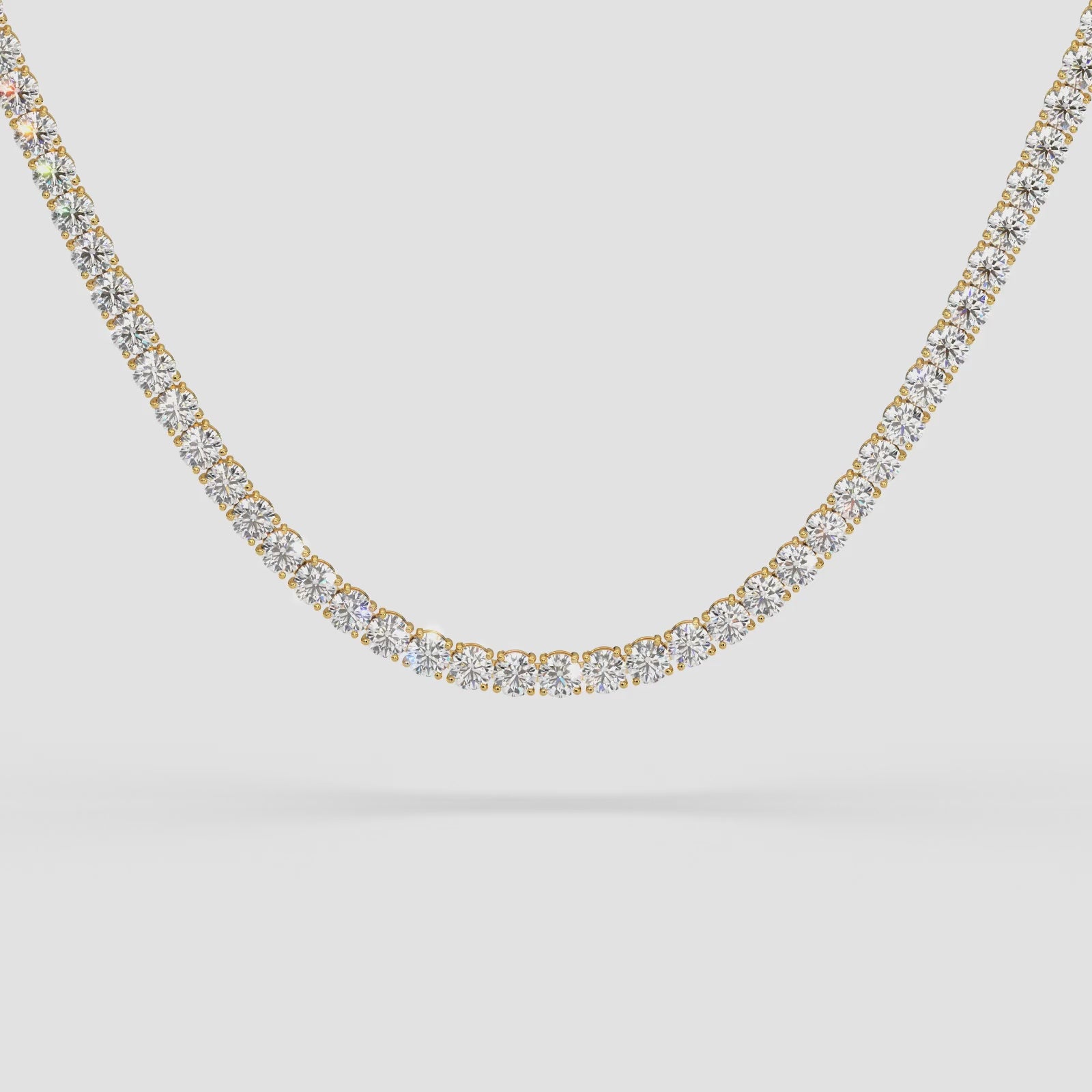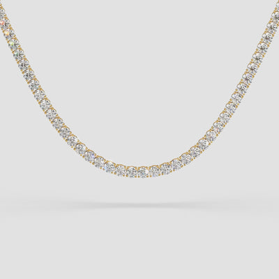 A radiant expression of luxury, the ultimate diamond tennis necklace handcrafted in 18K gold.