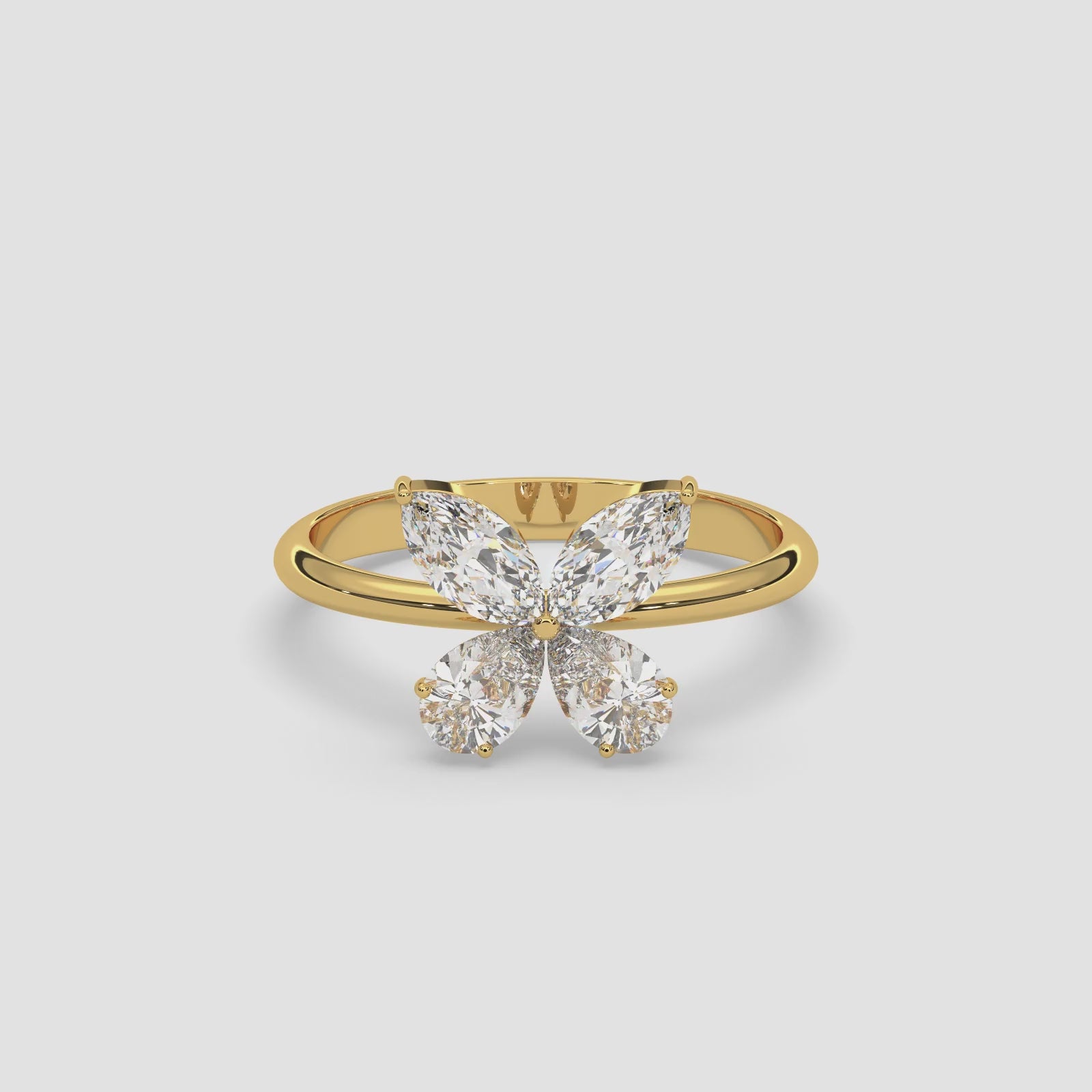 A radiant floral cluster ring crafted in 18K gold with marquise and round brilliant diamonds.