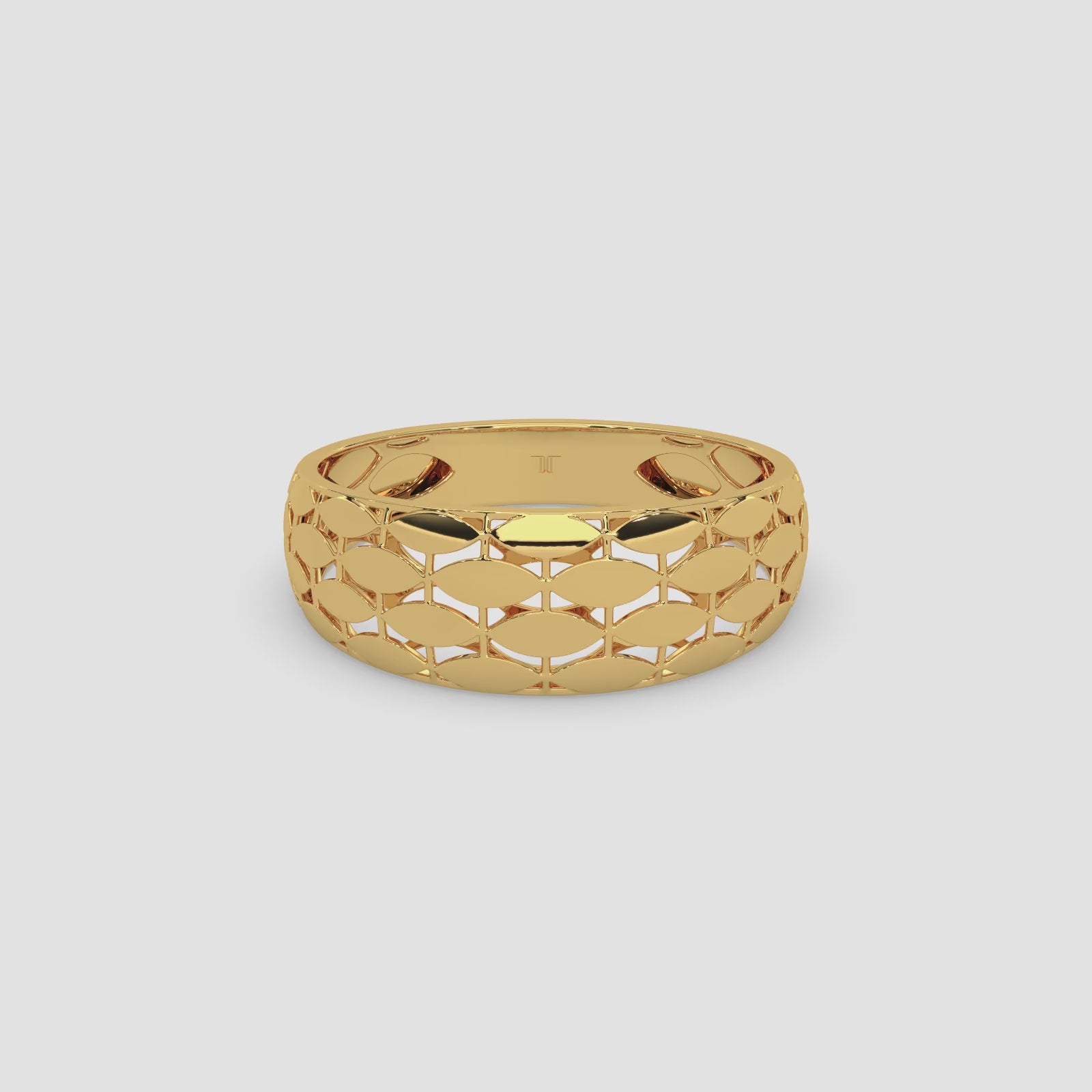 18k Solid Gold Openwork Marquise Band Ring | Elegant Lattice Statement Ring for Women