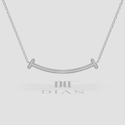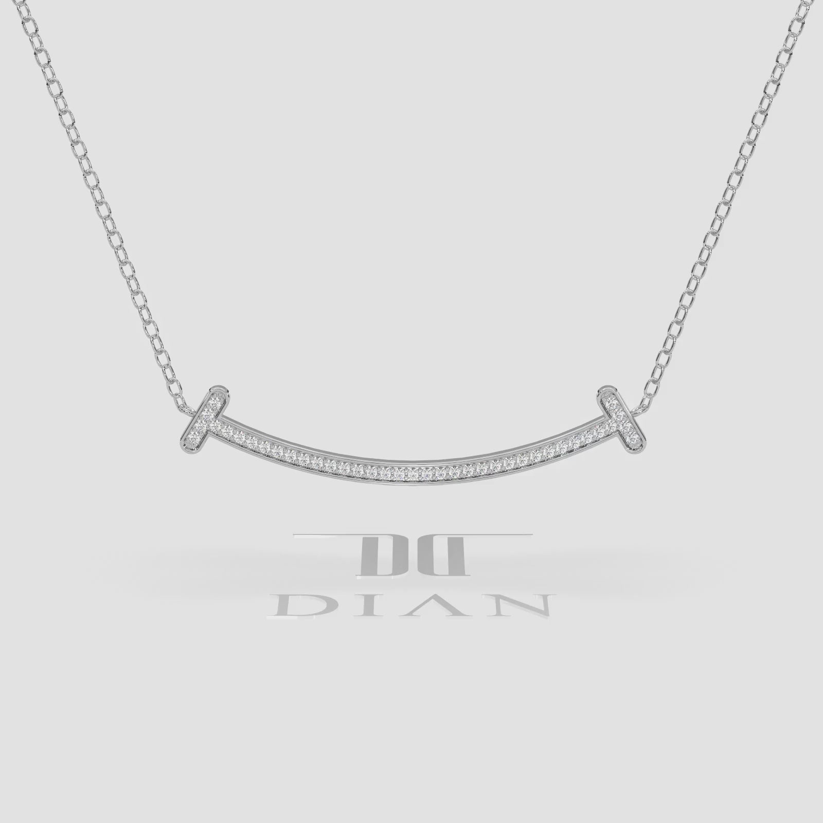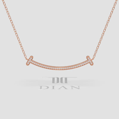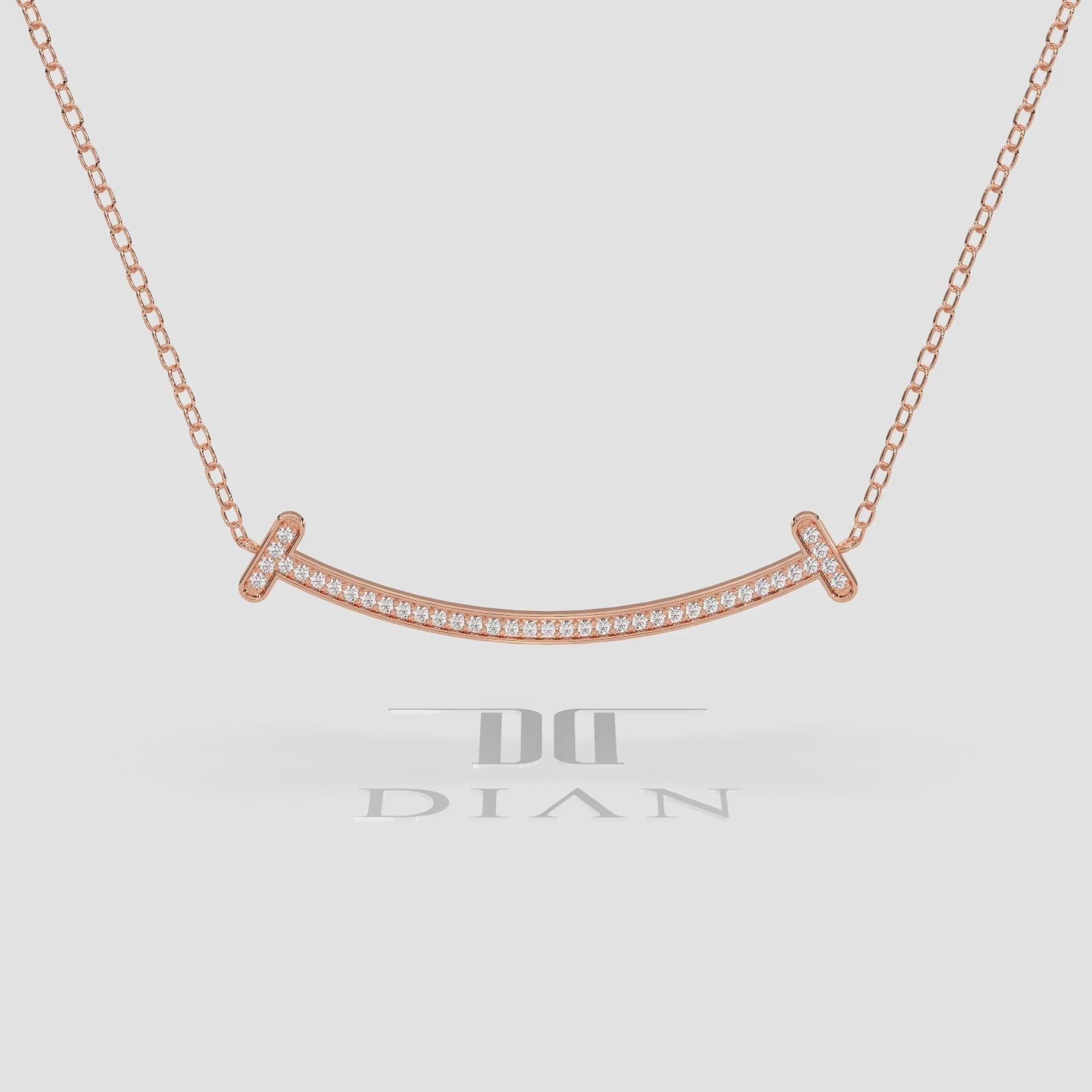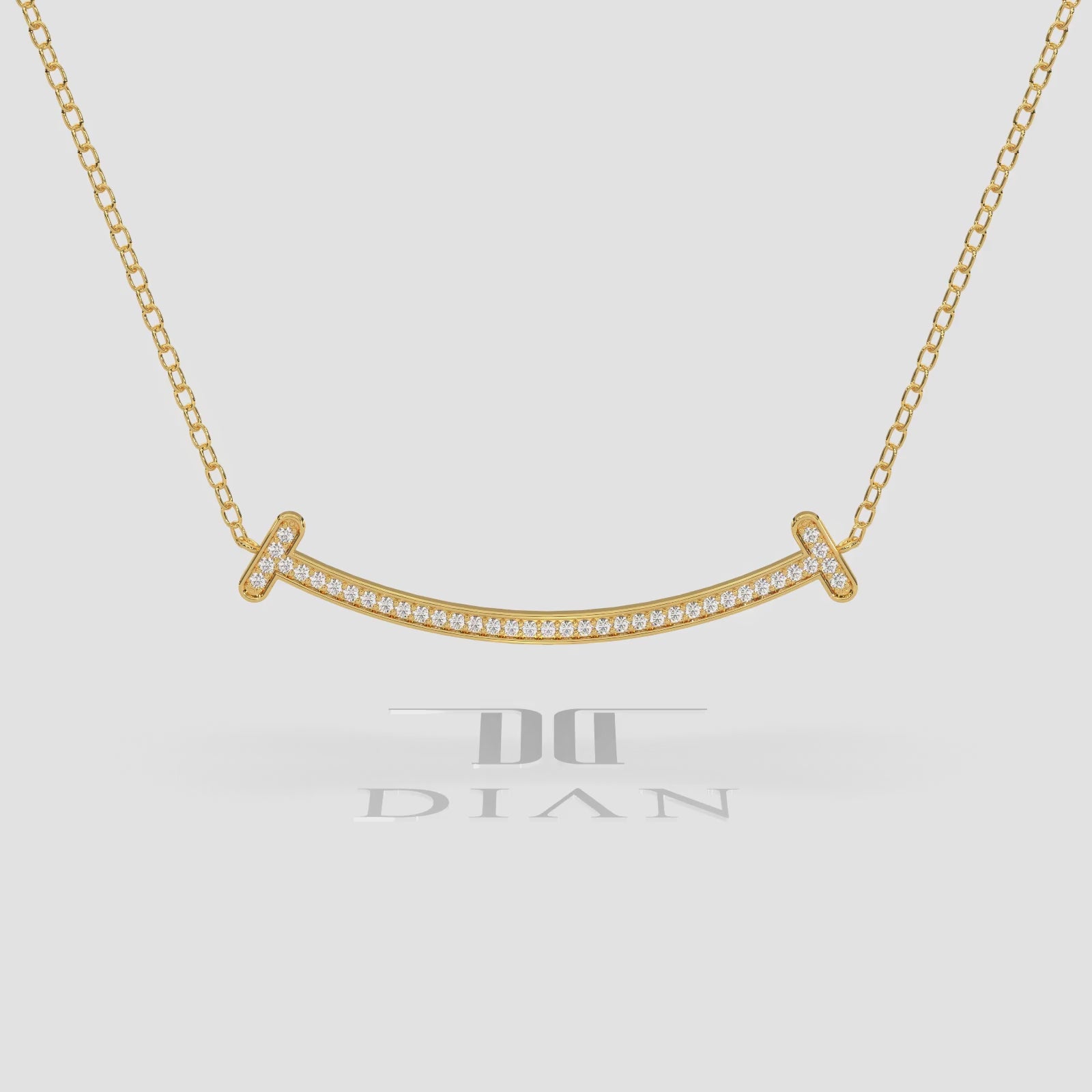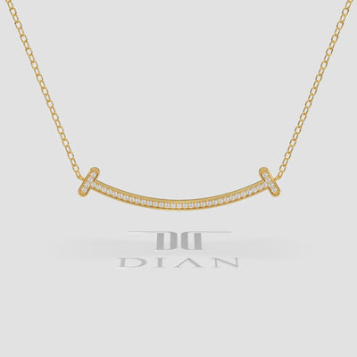 Add a touch of joy and sparkle to your look with our exquisite 18K yellow gold smile necklace, featuring a delicate curved bar pendant adorned with dazzling diamonds. A timeless and elegant piece perfect for everyday wear or a special gift. Shop now for luxurious fine jewelry.