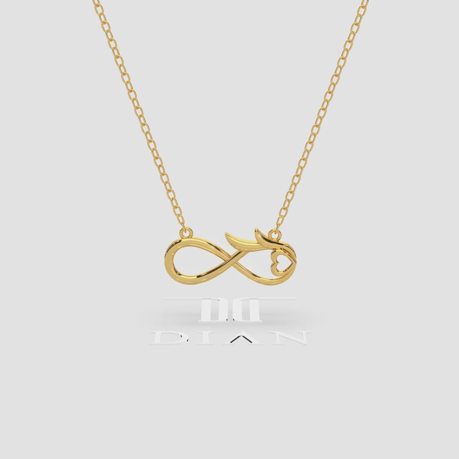 This elegant gold-toned necklace features a captivating infinity symbol, seamlessly integrated with a delicate heart or initial design, symbolizing eternal love and personalized connection.
